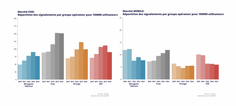 J’alerte l’Arcep : Free est de loin l’opérateur le plus signalé sur le fixe et le mobile par les Français en 2024