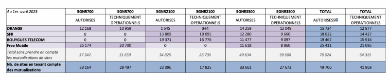 Au classement général et toutes fréquences confondues, Free Mobile conserve largement sa place de plus grand réseau 5G avec 21 095 sites contre 15 916 pour Bouygues Telecom, 14 427 pour SFR et 12 977 pour Orange.