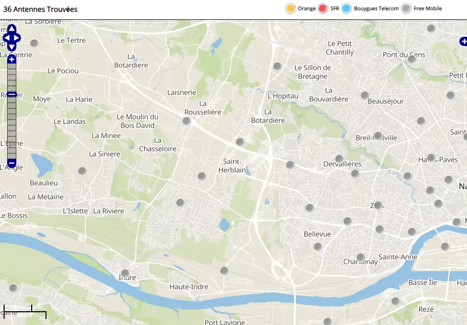 Free a implanté 9 antennes mobiles 4G dans la ville de Saint-Herblain (antennes non-actives incluses).