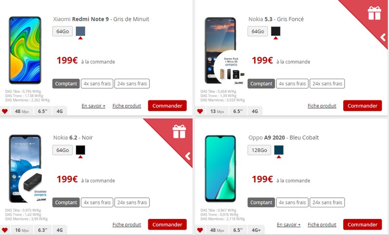 Aujourd’hui, nous mettons face-à-face les Xiaomi Redmi Note 9, Nokia 5.3, Nokia 6.2 et Oppo A9 2020, tous les quatre proposés à 199 euros.