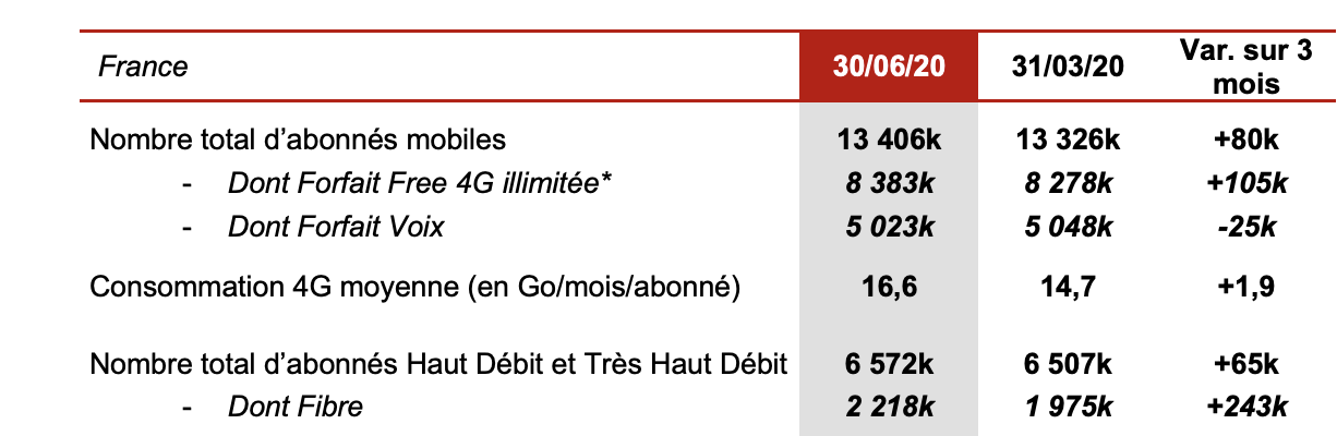 Tous les voyants sont au vert. Après de nombreux trimestres dans le rouge sur le fixe et un regain de forme initié fin 2019, Free retrouve enfin son éclat d’antan malgré la crise sanitaire. Sur ce segment, sa base d’abonnés fixe totale enregistre un gain de 112 000 abonnés sur le semestre dont 65 000 sur le 2ème trimestre soit sa meilleure performance depuis 4 ans, annonce ce matin l’opérateur lors de la présentation de ses résultats commerciaux et financiers. Le FAI redevient par la même occasion le 1er recruteur haut et très haut débit en France sur un trimestre pour la 1ère fois depuis 7 ans.