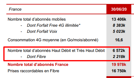 Depuis, Free a mis les bouchées doubles puisqu”il avait annoncé en juin avoir franchi le cap des 2 millions d’abonnés. Et il a été plus précis hier lors de la publication de ses résultats en indiquant disposer de 2,218 millions d’abonnés fibre au 30 juin 2020. Sachant que l’opérateur compte au total 6,572 millions d’abonnés Freebox (chiffres publiés pour le 1er semestre 2020), cela signifie qu’un tiers des Freenautes dispose désormais de la fibre.