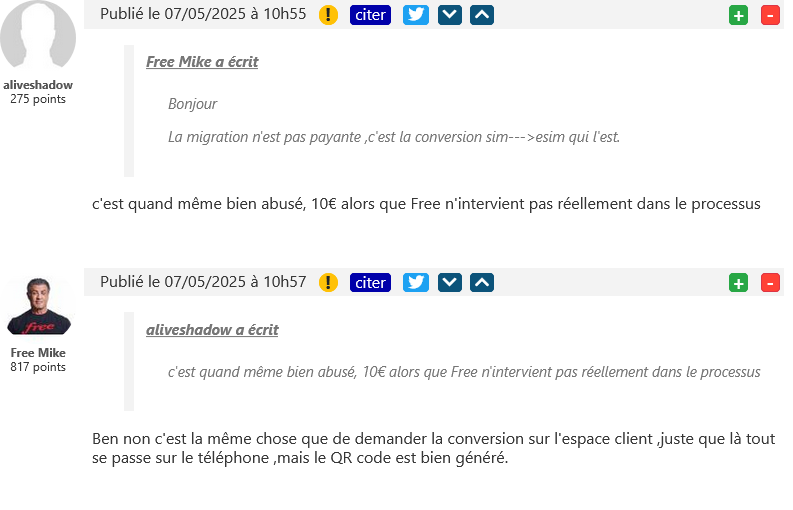 Le transfert rapide d’eSIM et la conversion d’une carte SIM classique en eSIM sont désormais disponibles pour les abonnés Free Mobile sur iOS. Une bonne nouvelle mais qui vient avec une surprise : en enclenchant la manipulation de conversion chez Free Mobile, on peut voir ainsi s’afficher un message prévenant que la manipulation sera facturée 10€ sur la prochaine facture de l’abonné. Et ces frais laissent pas mal de Freenautes perplexes, cherchant à trouver un sens à cela.