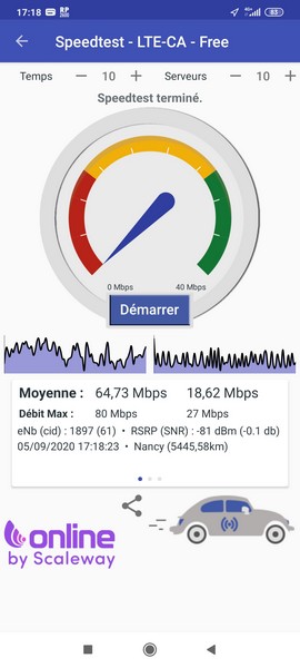 Ci-dessous, un exemple d’utilisation : départ à 11h30 avec 100 % et arrivée le lendemain à 20h17 avec 19 %