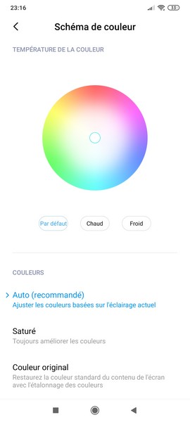 Toujours concernant les couleurs, il sera d’ailleurs possible d’en régler la chaleur depuis les paramètres du smartphone. Pour finir sur l’écran, nous n’avons pas noté de problème de luminosité particulier pour l’usage en extérieur.