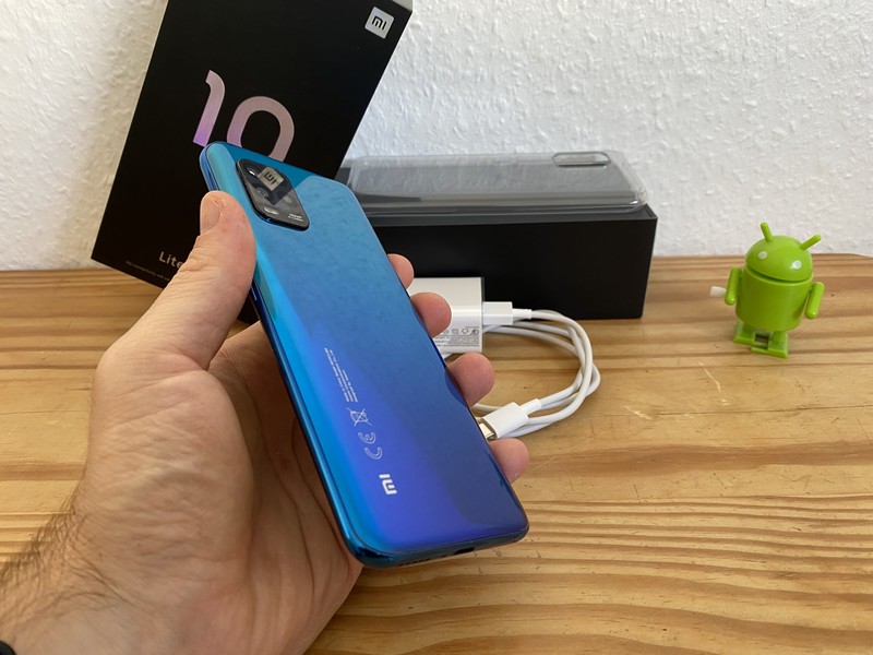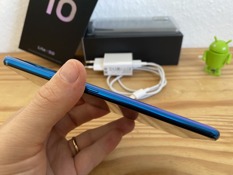 Le Xiaomi Lite 10 Lite existe en trois finitions blanc céleste, bleu boréal et gris cosmos. Nous avons eu la seconde qui fait son petit effet au déballage. Un brin tape-à-l’oeil, mais sans faire dans l’exagération.