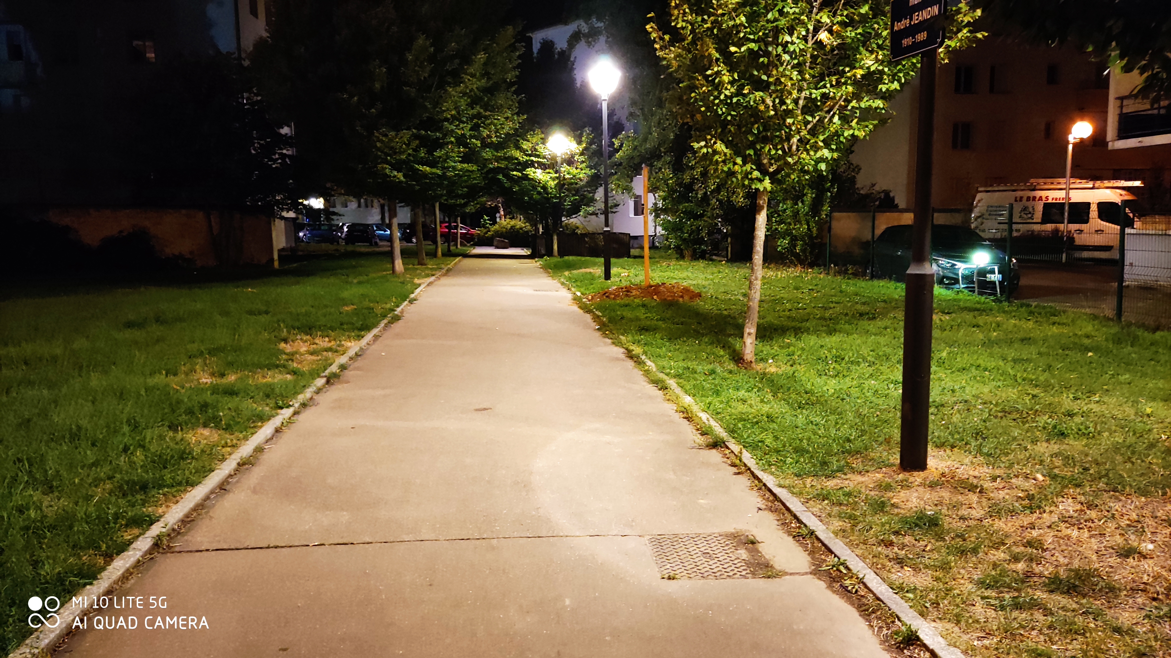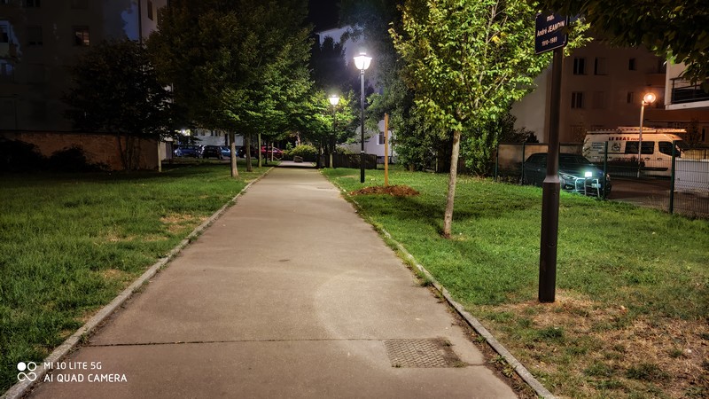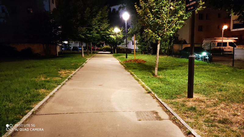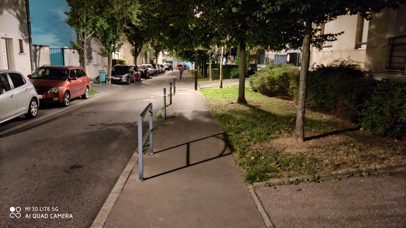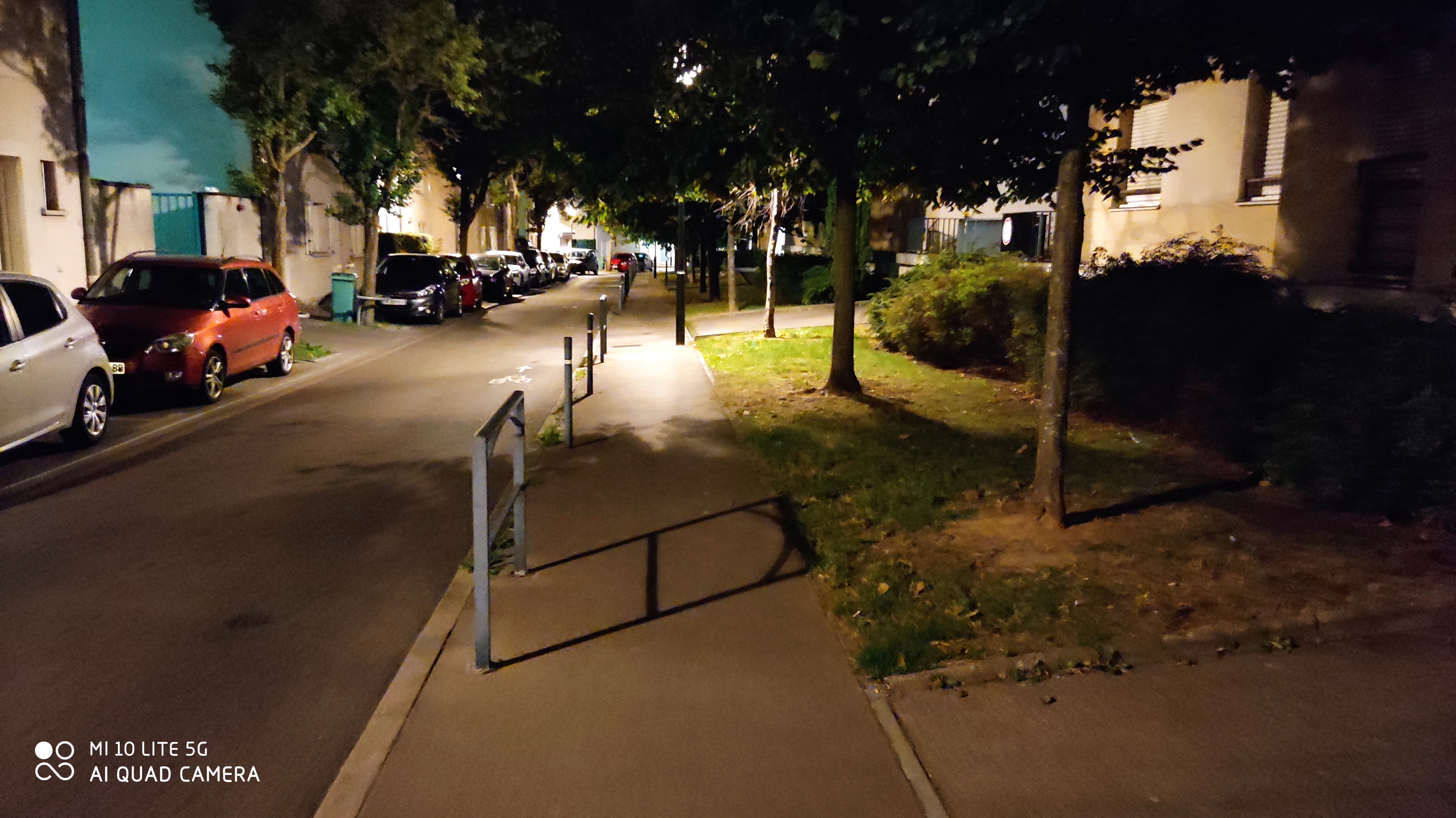 Des clichés de nuit en extérieur avec le mode dédié (notez d’ailleurs la seconde prise de vue avec ce mur crème devenant bleu, malgré plusieurs tentatives) :