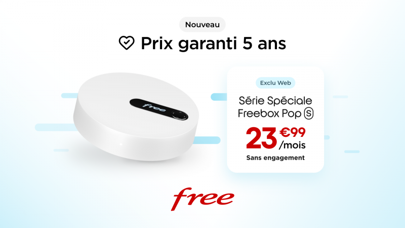 Avec un prix revu à la baisse le 20 mai, la “Série spéciale Freebox Pop S” se distingue par un tarif figé pendant cinq ans à 23,99 €/mois et des débits fibre jusqu’à 5 Gbit/s partagés, avec Wi-Fi 7 et répéteur inclus sur demande. L’offre reste sans engagement et se passe de décodeur TV mais inclut la téléphonie fixe avec les appels inclus depuis la Freebox vers les fixes de France métropolitaine et les DOM.