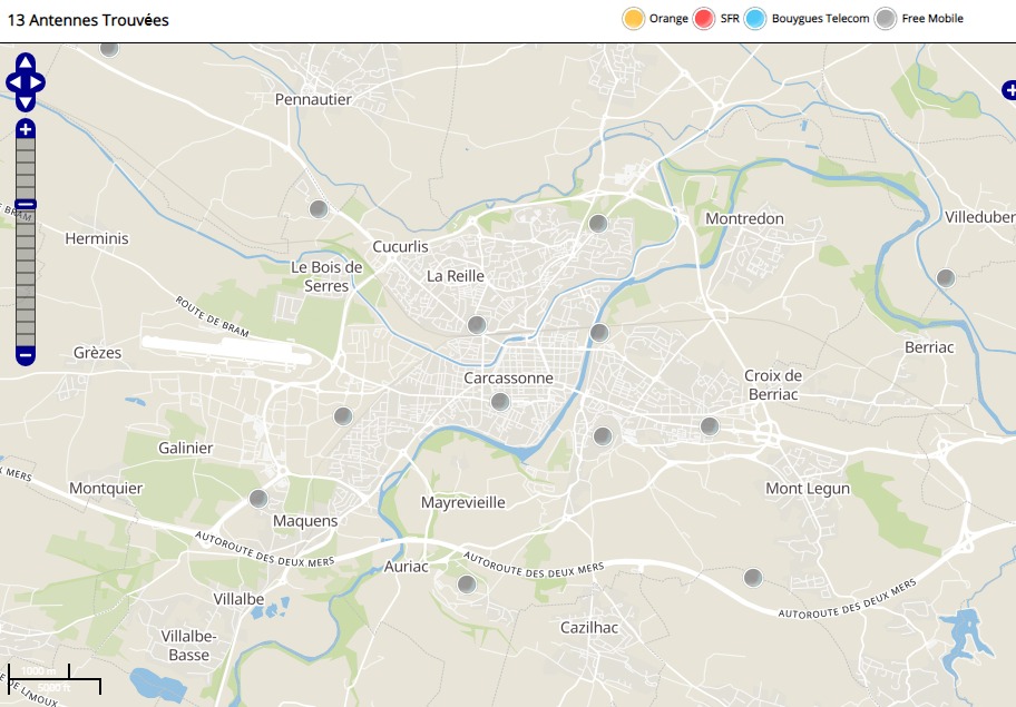 Découvrez la répartition des antennes mobiles Free 3G/4G sur Carcassonne dans l’Aude