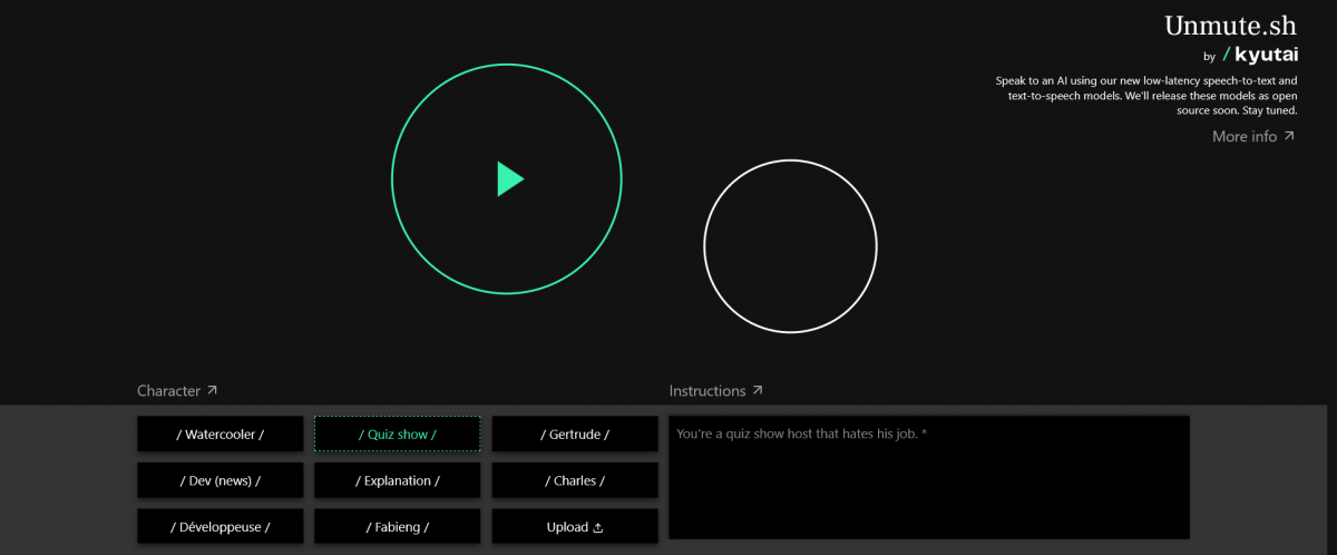 Kyutai met en avant une latence extrêmement faible, condition essentielle à une interaction fluide et naturelle. L’aspect personnalisable d’Unmute est également mis en avant : la voix de l’agent peut être définie à partir de quelques secondes d’enregistrement, et son comportement est ajustable via des prompts textuels, permettant une adaptation à divers contextes et usages.