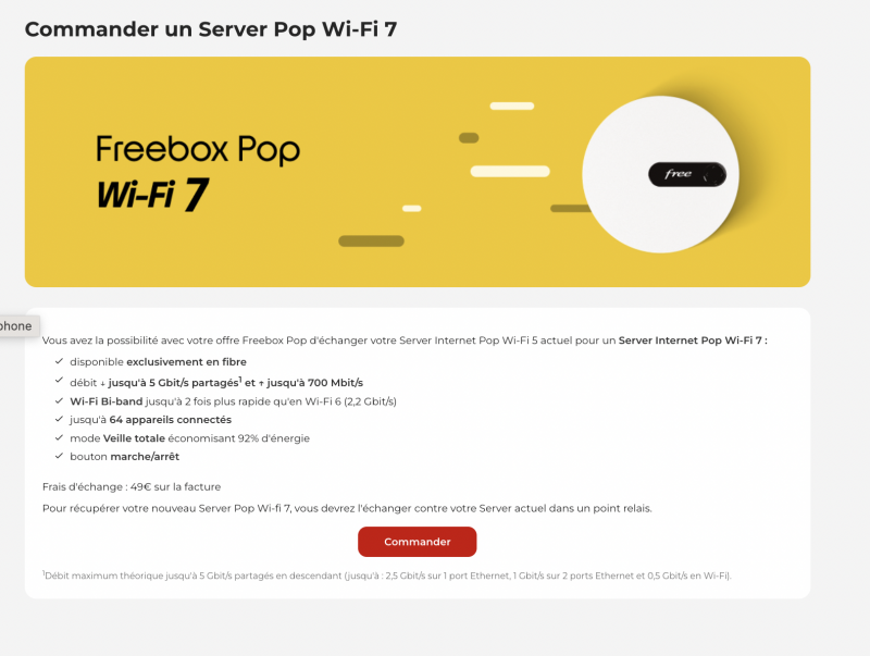 Le Server Pop Wi-Fi 7 se veut aussi plus économe, grâce à un mode veille totale permettant de réduire la consommation d’énergie de 92 %. Autre nouveauté pratique pour ceux qui souhaitent un échange, l’apparition d’un bouton marche/arrêt sur le boîtier. L’échange est facturé 49 euros sur la facture Free. Pour récupérer le nouveau modèle, l’ancien serveur devra être retourné dans un point relais.