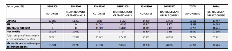 “Au 1er juin, 43 526 sites 5G sont déclarés techniquement opérationnels par les opérateurs de téléphonie mobile. La quasi-totalité de ces implantations 5G est autorisée sur des sites existants, déjà utilisés par les technologies 2G, 3G ou 4G. Seuls 13 sites n’hébergent que de la 5G”, précise l’ANFR.