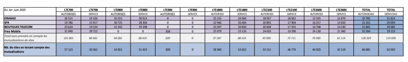 Du côté de la 4G, 62 050 sites sont déclarés techniquement opérationnels en métropole en comptant la mutualisation de sites (sinon 119 690 supports). Orange reste nettement leader en nombre de sites activés, suivi de Bouygues Telecom qui signe le meilleur mois en manière de déploiement. Il faut dire que Free Mobile est dans son rétroviseur. Dernier du classement, SFR ne se laisse pas décrocher par l’ex-trublion.
