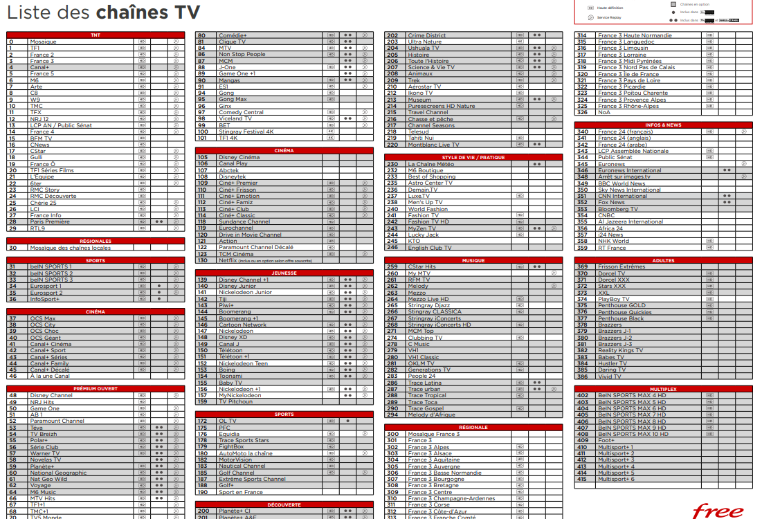 Vous êtes perdus parmi les centaines de chaînes de la Freebox ? Free met à jour le PDF des chaînes et Replay de Freebox TV