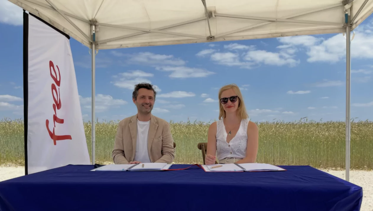 Ce 18 juin, Free a franchi une nouvelle étape dans sa transition énergétique. L’opérateur télécoms du groupe Iliad a officialisé la signature de son premier contrat d’approvisionnement en électricité éolienne en France, aux côtés de H2air, producteur d’énergie renouvelable. La cérémonie s’est tenue au pied des éoliennes du parc des Limodores, à Rochefort-sur-la-Côte en Haute-Marne, en présence de Nicolas Thomas, directeur général de Free, Camille Vandenbeuck, directrice générale déléguée de H2air, et de la maire de la commune, Hélène Haltz.
