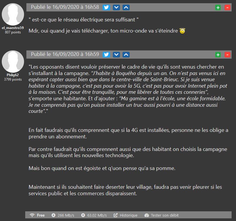 Autre marotte que les lecteurs réguliers d’Univers Freebox connaissent bien : les oppositions aux antennes-relais. Souvent avec des relents de craintes sur la 5G. Mais pour certains lecteurs, les arguments avancés ne sont pas suffisants (voir assez ridicule), et dénotent d’un certain égoïsme.
