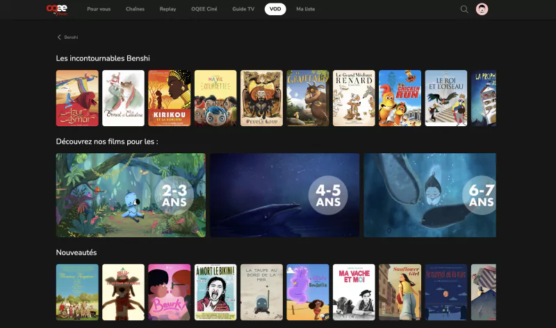 Pensée pour les familles et les jeunes cinéphiles, Benshi est la 1ère plateforme de streaming 100% cinéma entièrement dédiée aux enfants, de 3 à 11 ans. Elle propose une sélection (qualité plus que quantité), sans publicité, composée de films, grands classiques, courts métrages et animations soigneusement choisis par une équipe de professionnels du cinéma et de l’enfance. De quoi plaire aussi aux plus grands.
