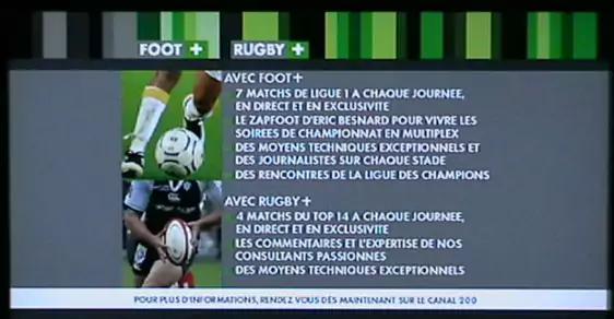 Les canaux 201 à 208 sont désormais nommés « à la carte » et diffuseront Foot+ et Rugby+. Pour rappel, et comme nous vous l’annoncions hier, Foot+ sera gratuit pour tous les abonnés à Canal+ et à Canalsat jusqu’au 30 septembre.