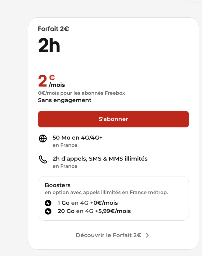 - Juin 2025 : l’option Booster incluait 40 Go pour 3,99 €/mois.