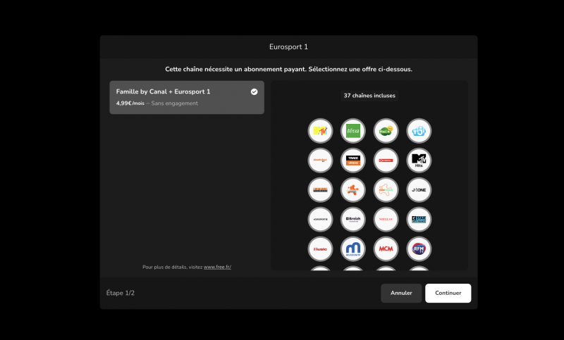 Selon nos constatations, le bouquet n’est pas encore proposé à l’activation dans l’espace abonné Freebox Révolution Light, Pop et mini 4K par exemple. Pour y souscrire, il faut passer par Freebox TV ou Oqee en vous rendant par exemple sur le canal 33 de Eurosport 1.