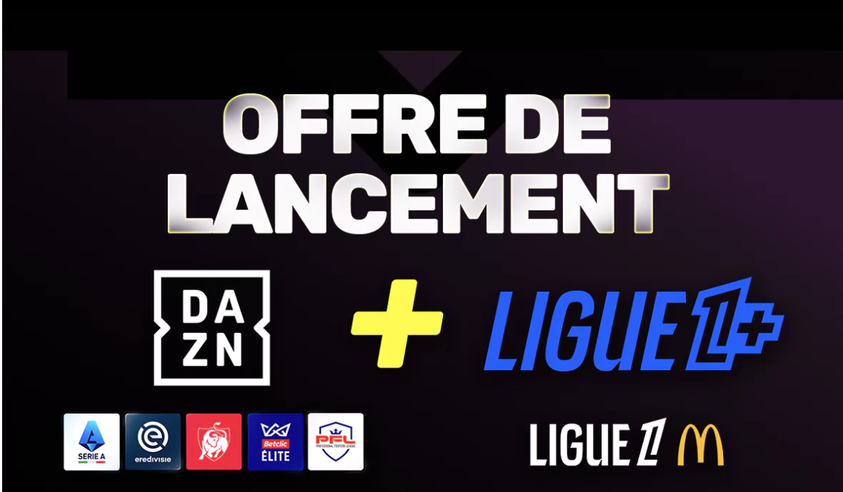 DAZN casse les prix au lancement de Ligue 1+. La plateforme propose un pack incluant la chaîne officielle de la LFP mais aussi tout son catalogue sport (foot, basket et combats), à 9,99 €/mois pendant 3 mois, puis 14,99 €/mois pendant 9 mois, avec engagement de 12 mois. L’offre valable est jusqu’au 31 août.