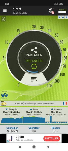 La partie réseau est la seule qui nous a déçus en fait. Nos tests de débit atteignaient difficilement les 100 Mbit/s, même dans des zones bien couvertes. Le mot “champagne” nous est d’ailleurs venu à l’esprit lorsque nous avons franchi pour la première fois ce cap. La gestion double-SIM obligera de son côté à faire une croix sur l’extension mémoire. Mieux vaut donc prévoir la version 128 Go si vous comptez utiliser le dual-SIM. Au moins le Poco X3 supporte-t-il la 4G 700 MHz (B28) chère aux abonnés Free Mobile et améliorant la réception réseau en intérieur. Pas de 5G en revanche pour ce smartphone, ce qui n’a rien de surprenant au regard du prix.
