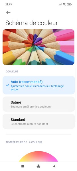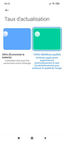 En plus d’une bonne diagonale de 6,67 pouces et d’un poinçon qui se fait vite oublier, le Poco X3 profite d’une dalle offrant un taux de rafraîchissement en 120 Hz, annonciateur d’une bonne fluidité. Une caractéristique notable sur ce segment tarifaire. Depuis les réglages, on peut d’ailleurs revenir aux classiques 60 Hz pour économiser la batterie. On peut aussi choisir la température d’affichage.