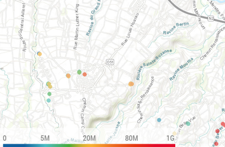 Carte de couverture 4G/4G+ de Free Réunion (donnée de monreseaumobile.fr) :