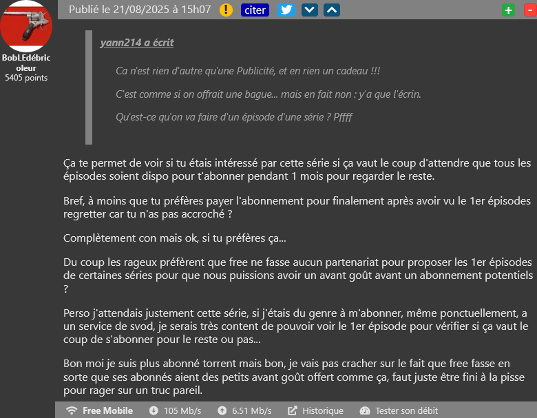 Un cadeau de Free quand même critiqué, et si Bouygues donnait le mauvais exemple à la concurrence ? Vos meilleures réactions à l’actualité de Free et des télécoms