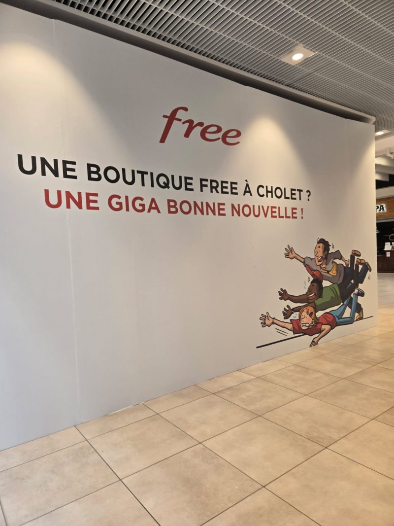 C’est le cas de Raphaël, Freenaute et lecteur d’Univers Freebox, qui a nous a envoyé une photo montrant une palissade aux couleurs de Free et qui cache les travaux d’un futur Free Center. Ce nouvel espace dédié aux offres Free se situer dans le centre commercial Carrefour à Cholet. Ce sera ainsi le premier Free Center dans cette ville.