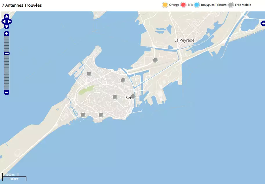 Free a également implanté 7 antennes mobiles 3G dans la ville de Sète (antennes non-actives incluses).
