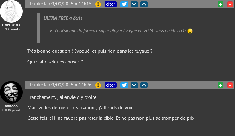 Thomas Reynaud, directeur général du groupe Iliad, recentre le débat. Il affirme ainsi que la véritable priorité de Free restait l’innovation, et notamment le développement de la prochaine génération de Freebox. Cependant, cette génération semble encore assez lointaine, d’autant qu’un projet reste en suspens : le nouveau player prévu par Free depuis le lancement de l’Ultra ! Forcément, les abonnés Freebox restent donc assez prudents dans leurs attentes, et un peu taquins. D’autant que la dernière Freebox Ultra ne convainc pas tous les Freenautes, notamment par son positionnement haut de gamme.