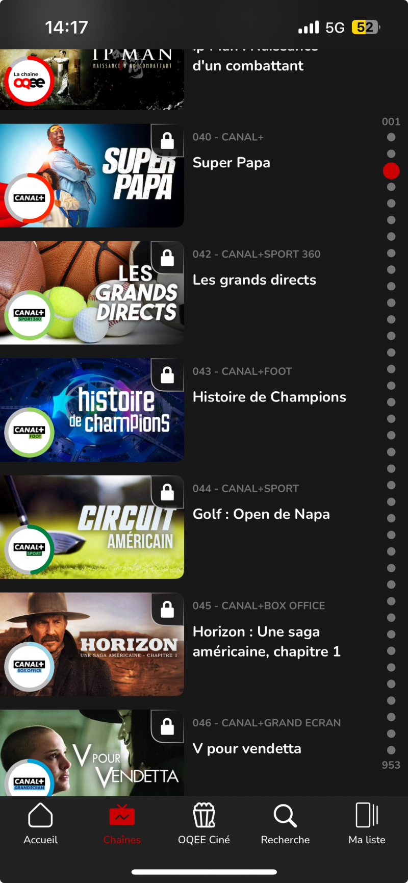 Après l’arrivée de Canal+ La Chaîne en live avec la mise à jour Oqee 2.30 sur iPhone et iPad, l’appli de Free affiche désormais l’univers complet Canal+ sur iOS : les chaînes sont regroupées du canal 40 au canal 49 . Une bonne nouvelle pour tous les abonnés Freebox (Ultra, Ultra Essentiel, Pop, Révolution, mini 4K) disposant de l’app Oqee et qui attendaient cet accès depuis plusieurs années. La présence de ces chaînes de la filiale de Vivendi  en mobilité chez Free marque une extension au-delà des players Freebox, c’est surtout le fruit d’un nouvel accord entre Canal+ et Free. L’application Canal+ était jusqu’à présent la seule porte d’entrée.