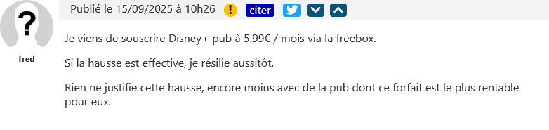 Disney+ relève ses tarifs en France pour les nouveaux abonnés : un euro de plus sur les offres Standard avec pub et Standard, et 2 euros sur l’offre Premium. La promotion de rentrée masque partiellement cette hausse mais du côté de Free, les tarifs affichés n’ont pas encore bougé. Mais il faut dire qu’une nouvelle augmentation a de quoi faire grincer des dents…