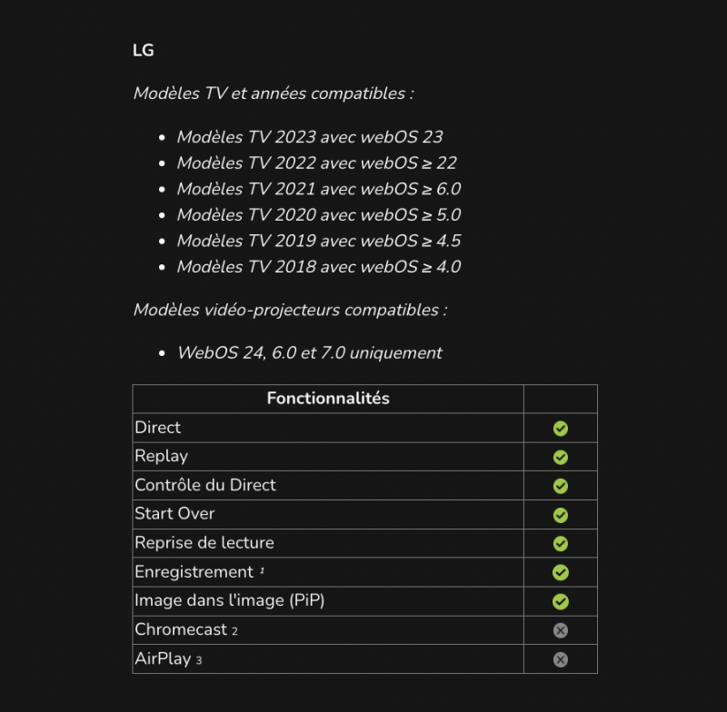 Après les smartphones, box Android, Fire Stick, Apple TV, et les TV connectées, le compte X d’Oqee ainsi que le site d’assistance du service TV de Free annoncent ce 6 octobre la compatibilité de l’app Oqee avec les modèles de vidéo-projecteurs LG fonctionnant sous webOS 24, 6.0 et 7.0. La page d’aide a été mise à jour pour intégrer cette nouveauté.