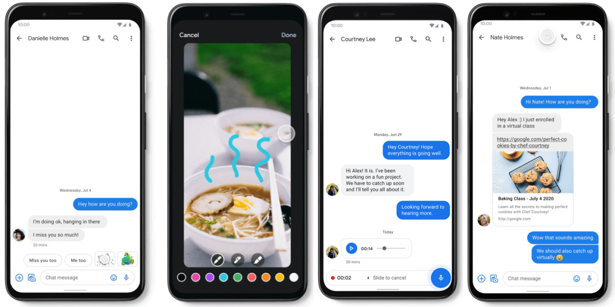 Concernant la modification d’image, vous pouvez désormais modifier votre photo grâce à un simple éditeur. Concernant l’enregistrement de messages vocaux, un bouton dédié a été intégré afin de faciliter l’enregistrement de vocaux ainsi qu’un bouton permettant de lancer des appels sur Google Duo depuis Google Messages.