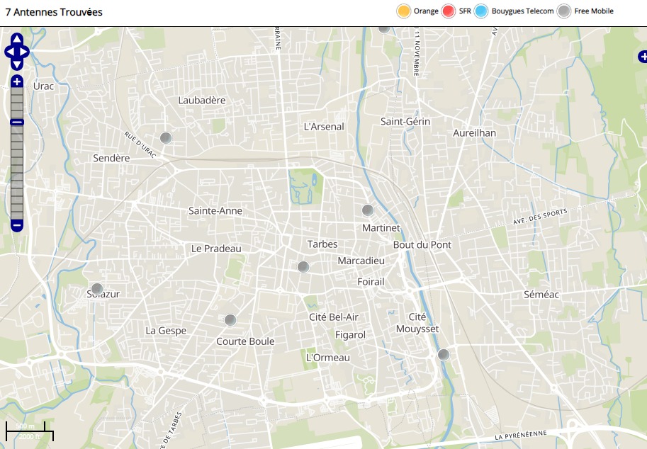 Free a également implanté 5 antennes mobiles 3G dans la ville de Tarbes (antennes non-actives incluses).