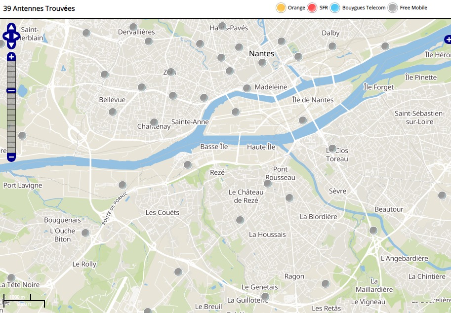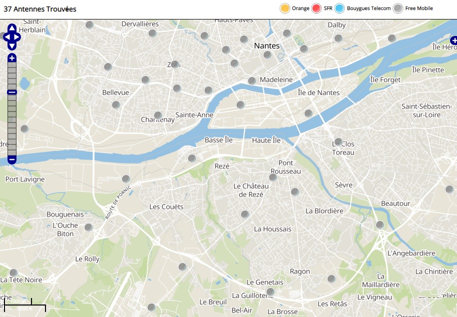 Découvrez la répartition des antennes mobiles Free 3G/4G sur Rezé dans la Loire-Atlantique