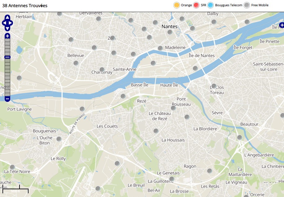 Free a également implanté 6 antennes mobiles 3G dans la ville de Rezé (antennes non-actives incluses).