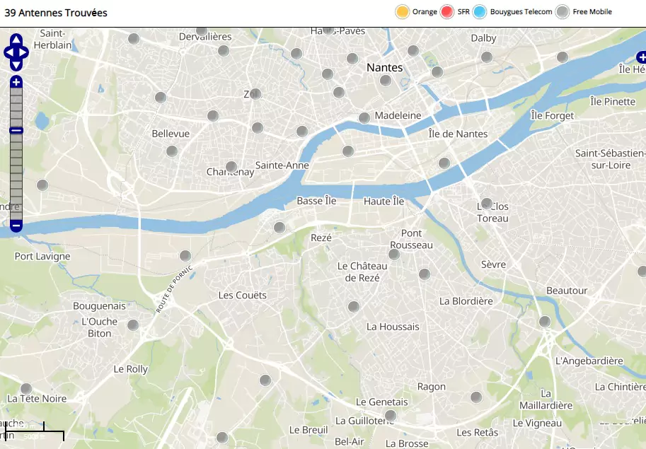 Free a également implanté 6 antennes mobiles 3G dans la ville de Rezé (antennes non-actives incluses).