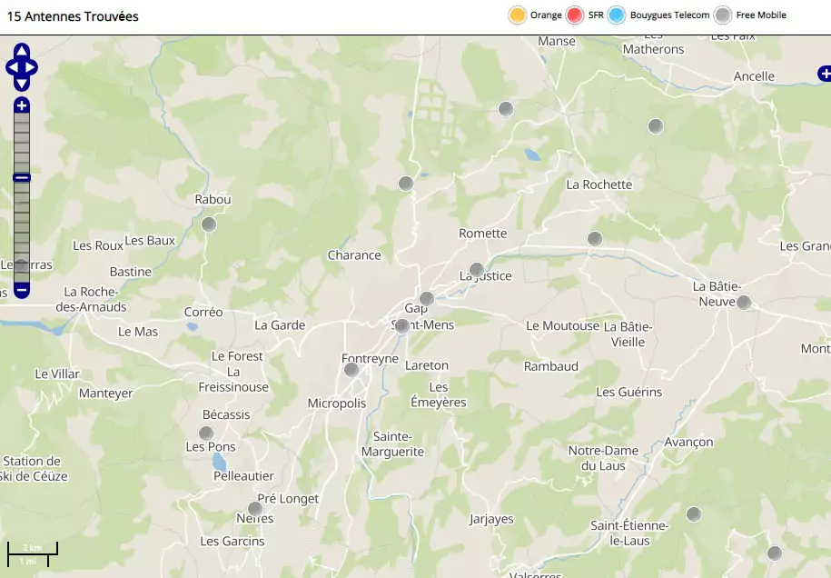 Free a également implanté 6 antennes mobiles 3G dans la ville de Gap (antennes non-actives incluses).