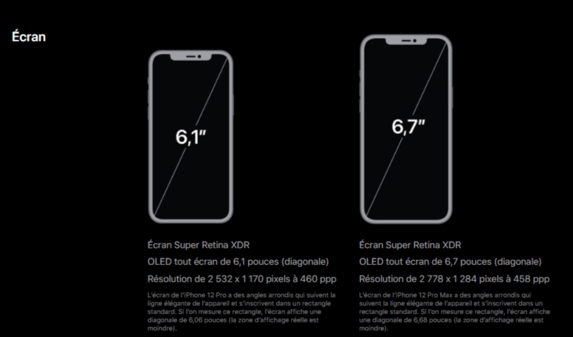 L’iPhone 12 classique offre un écran de 6,1 pouces alors que l’iPhone 12 mini est équipé d’un écran de 5,4 pouces. Ce qui en fait un des plus petits smartphones haut de gamme disponibles sur le marché. Comme les versions Pro, chacun dispose d’un écran Super Retina XDR avec de l’OLED. La technologie Céramic Shield est bien évidemment intégrée à ces deux modèles.