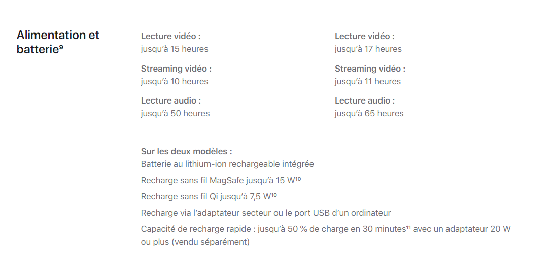 Cette nouvelle gamme d’iPhone signe aussi la fin du bloc secteur dans la boîte. Afin de réduire son empreinte écologique, Apple a fait le choix de ne plus fournir l’adaptateur, mais uniquement le câble USB-C vers lightning ce qui réduit la taille des emballages. Cela s’applique donc pour les nouveaux modèles ainsi que l’IPhone XR, l’iPhone 11 et l’iPhone SE. “Dans le prolongement des efforts entrepris pour atteindre nos objectifs en matière environnementale, l’iPhone 11 est désormais livré sans adaptateur secteur. Veuillez utiliser l’adaptateur secteur Apple déjà en votre possession ou en acheter un séparément”, voilà ce qui est désormais indiqué sur le site d’Apple dans la présentation du modèle de l’an dernier. Adaptateur secteur désormais facturé 25 euros contre 35 euros jusqu’à maintenant. Pas d’inquiétude concernant les écouteurs, c’est une obligation légale en France de les fournir dans la boîte.