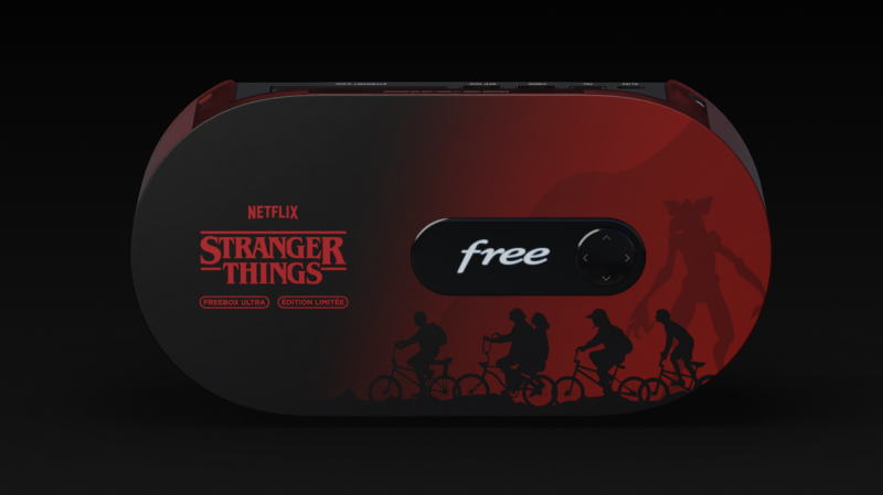 À l’occasion de la 5ᵉ et ultime saison de Stranger Things, Free et Netflix s’unissent pour commercialiser une édition limitée Stranger Things de la Freebox Ultra avec un design revisité aux couleurs de l’Upside Down.