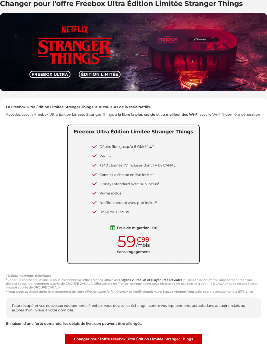Freebox Ultra Edition Limitée Stranger Things : Free offre les frais de migration à certains abonnés
