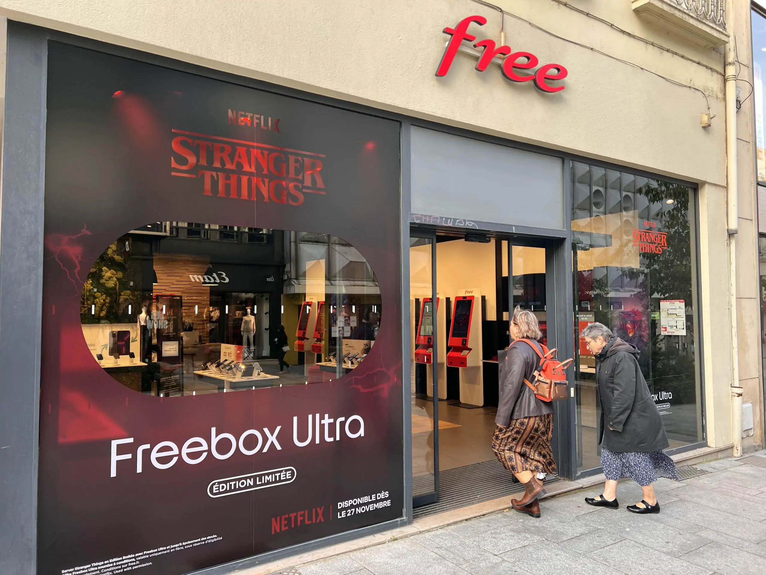 Le partenariat entre Netflix et Free envahit même les rues, les boutiques de l’opérateur sont décorées et équipées pour accueillir la nouvelle Freebox Ultra.