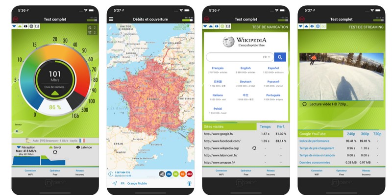 Disponible gratuitement sur Android et iOS, l’application mobile nPerf permet pour rappel d’évaluer la qualité de sa connexion mobile ou Wi-Fi en effectuant un test de débit descendant, un test de débit montant, un test de navigation sur plusieurs sites Internet et un test de streaming vidéo avec trois qualités d’affichage. En fin de test, elle délivre alors un nombre de points reflétant la qualité globale de la connexion.