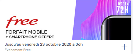 Cette offre devait s’arrêter ce mardi 20 octobre à 6h sur le site veepee.fr, met, comme cela arrive régulièrement pour le mobile, Free a décidé de la prolonger jusqu’au vendredi 23 octobre à 6H. Ce forfait Free Veepee est proposé au tarif habituel, soit 19,99€/mois ou 15,99€/mois pour les abonnés Freebox, avec un engagement de 24 mois. En passant commande sur le site de e-commerce, vous recevrez également un Huawei P smart S 128 Go Noir offert (d’une valeur de 199€).