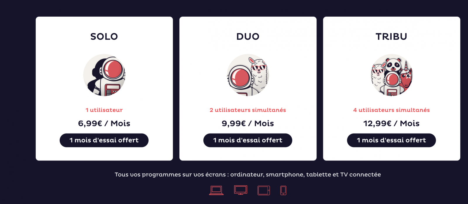 Trois offres proposées de 6,99€/mois à 12,99€/mois