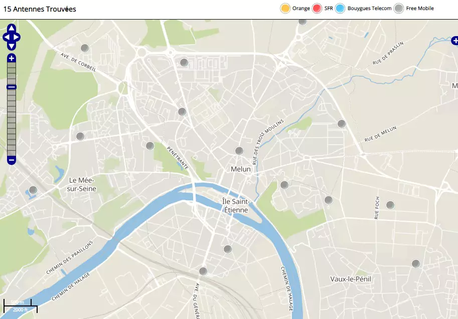 Free a également implanté 8 antennes mobiles 3G dans la ville de Melun (antennes non-actives incluses).
